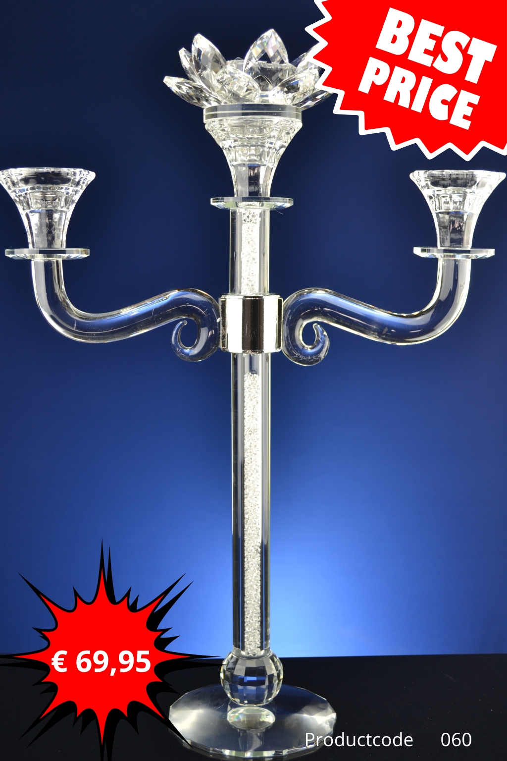 » Luxe Kristallen Kandelaar 3-Arms – Elegante Kaarsenhouder met Facetgeslepen Kristal | Model 060