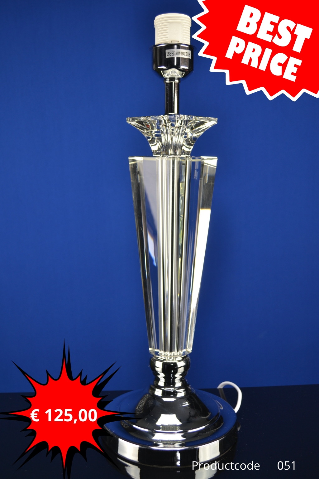 » Luxe Kristallen Tafellamp Voet – Slank Design met Facetgeslepen Kristal | Model 051
